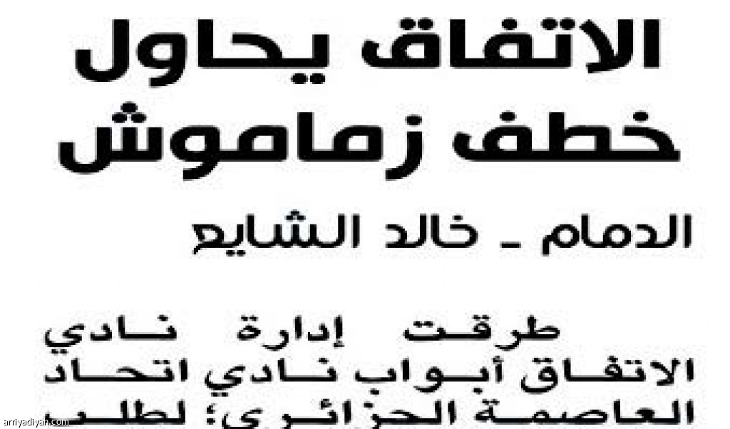 كشفت لـ"الرياضية" مصادر مطلعة، أن الزمالك المصري دخل على خط مفاوضات الاتفاق مع نظيره الاتحاد الجزائري، للتعاقد مع محمد الأمين زماموش الحارس الدولي، مقدمًا عرضًا مغريًا للتعاقد مع اللاعب.