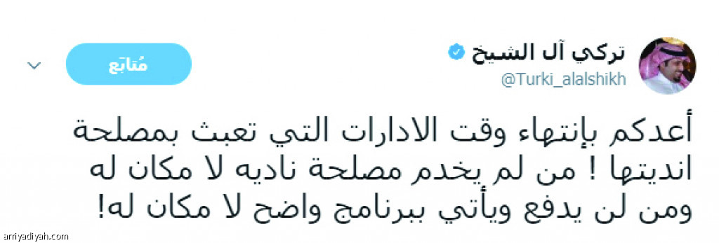وأضاف: "أعدكم بإنتهاء وقت الإدارات التي تعبث بمصلحة أنديتها، من لم يخدم مصلحة ناديه لا مكان له، ومن لن يدفع ويأتي ببرنامج واضح لا مكان له".