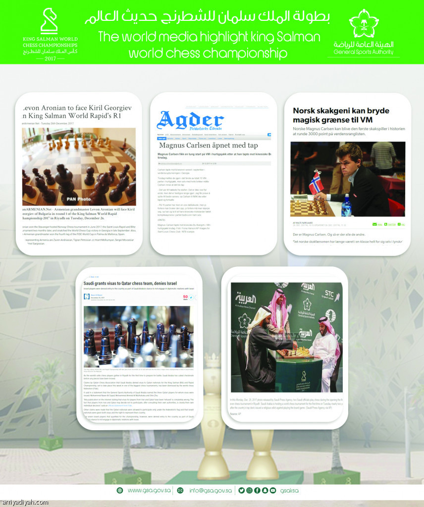 تفاعل عدد من الصحف الأجنبية مع بطولة كأس الملك سلمان العالمية للشطرنج بتخصيص مساحات في صفحاتها الرياضية لتغطية منافسات البطولة وأخبارها اليومية كحدث رياضي عالمي تستضيفه العاصمة السعودية الرياض.