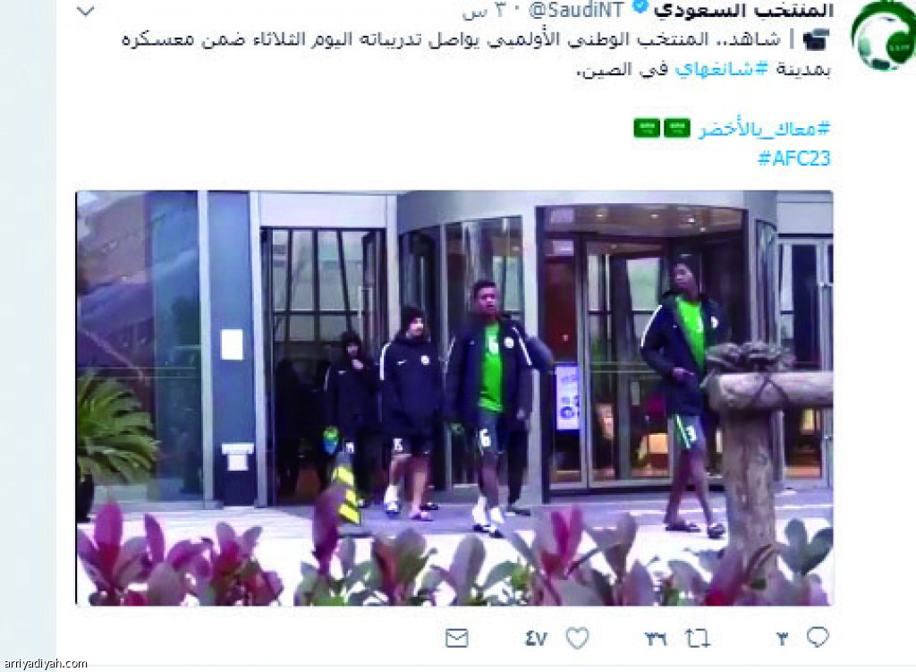 وثق حساب المنتخب السعودي الأول لكرة القدم على موقع التواصل الاجتماعي تويتر معسكر الأخضر الأولمبي المقام حالياً في مدينة شنغهاي الصينية استعداداً لنهائيات آسيا تحت 23 عامأً في التاسع من يناير الجاري.