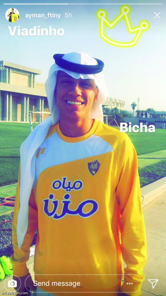 نشر أيمن فتيني، لاعب فريق أحد الأول لكرة القدم على حسابه الخاص في إنستجرام صورة لزميله البرازيلي إدواردو فيجريدو وهو يرتدى الغترة السعودية بعد نهاية الحصة التدريبية.