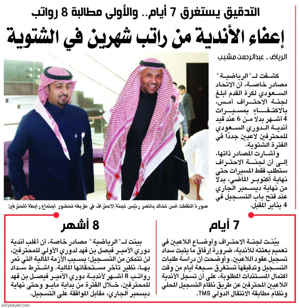 قلَّص الاتحاد السعودي لكرة القدم مهلة تقديم مسيِّرات رواتب اللاعبين المحترفين، ومديري الاحتراف في أندية دوري المحترفين السعودي بواقــــــع شـــهريــن، فيمـــا قلَّص بواقــــــع ثلاثة أشهر مهلـة تقديم المســيِّرات المماثلة في دوري الأمير فيصل بن فهد للدرجة الأولى.