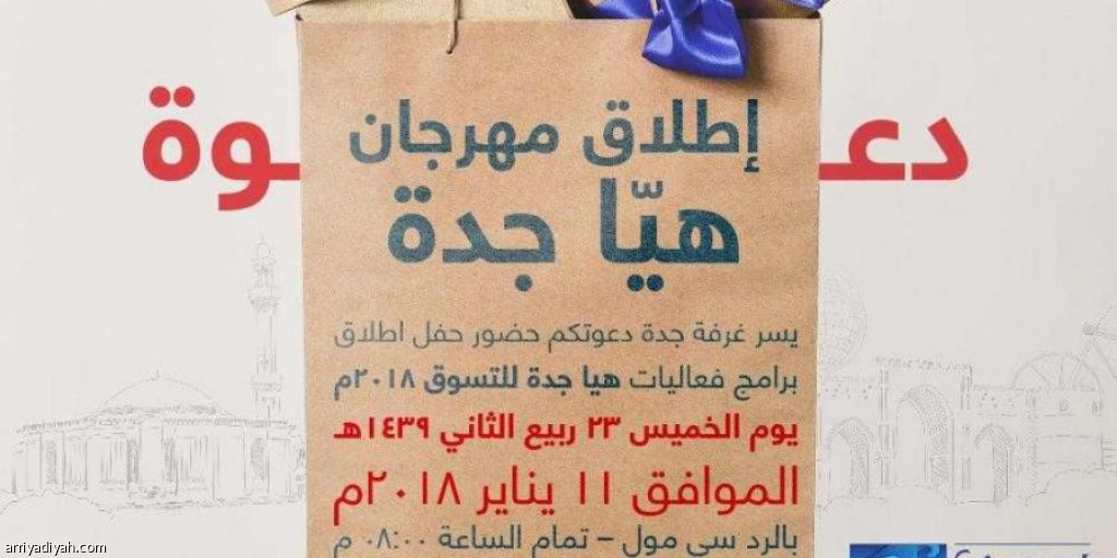 تنـطـلق اليـوم فـعـاليات مهرجان "هيّا جدة" للتسوق 2018م في نسخته السادسة، بمشاركةٍ من أمانة محافظة جدة، ومطار الملك عبد العزيز الدولــي، والهـيـئة العــامة للسياحة والتراث الوطني.
