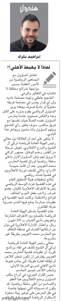 حظي مقال الزميل إبراهيم بكري الصادر في عدد أمس الذي جاء بعنوان "لماذا لا يهبط الأهلي" بتفاعل الكثير من المغردين.