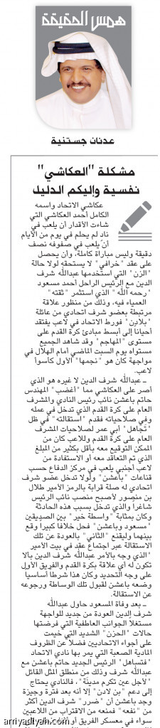 اعتبر الزميل عبد الرؤوف ناجي أن من ورط الاتحاد باللاعب أحمد العكايشي هو عبدالله شرف في رده على مقال الزميل عدنان جستنية الصادر أمس بعنوان "مشكلة العكايشي نفسية وإليكم الدليل".