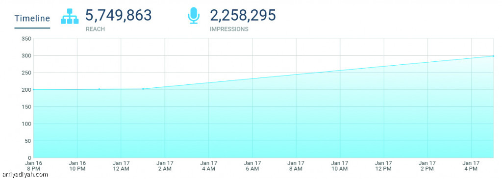 وكان عدد المشــــاركين في الهاشتاق 2.258.295 وعدد زوار الهاشتاق 5.746.863، ووصلت نسبة الرتويت 77.9 في المئة وعدد المشاركات الأصلية 22.1 في المئة بينما شارك من جنس الذكور 57.1 في المئة ونسبة الإناث 42.9 في المئة.