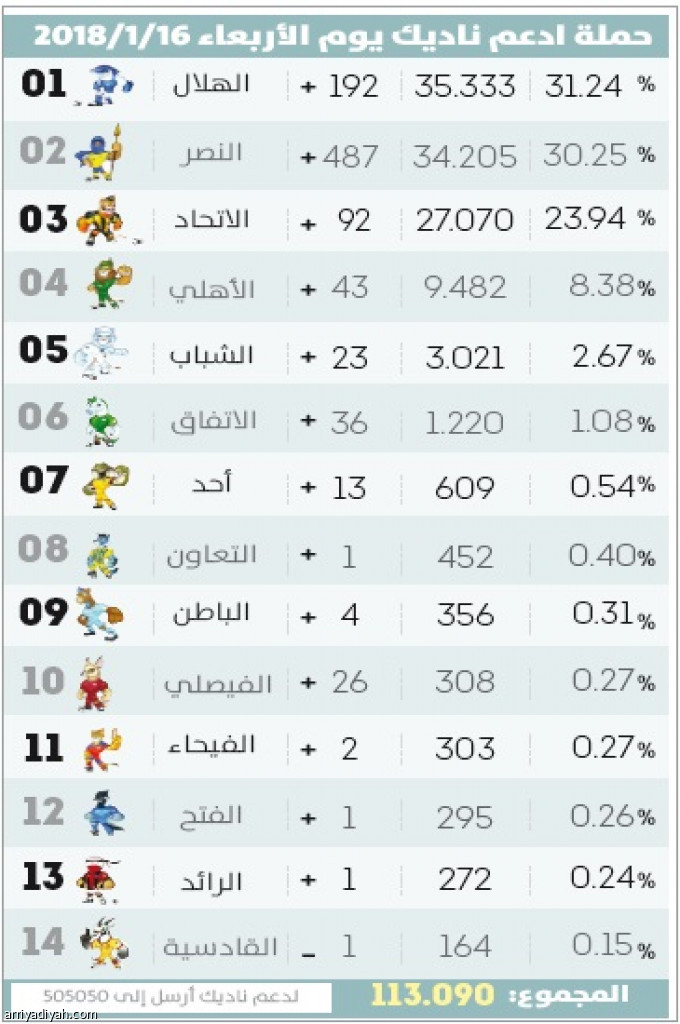انعكست النتائج المميزة التي قدمها فريق الفيحاء خلال المباريات الماضية في الدوري السعودي للمحترفين على ترتيبه في سلم حملة "ادعم ناديك".