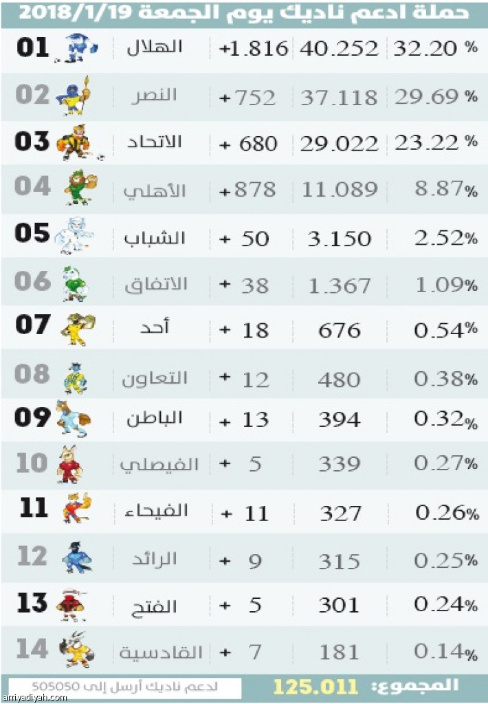 وعلى الرغم من تمسك الهلال بكرسي الصدارة ووصوله إلى الرقم 40,252 مشتركاً إلا أن جماهيره جاءت في المرتبة الثانية خلف النصر خلال الـ19 يوماً الماضية بعدد وصل إلى14,065 مشتركاً.
