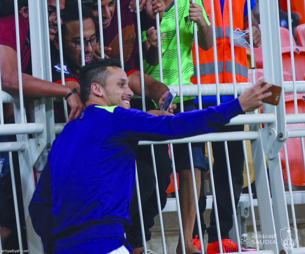 التقط بعض لاعبي الأهلي صور سيلفي مع بعض الجماهير بعد نهاية لقاء الفريق أمام العروبة أمس. والتقط مؤمن زكريا مجموعة من الصور مع عدد من الجماهير المصرية التي حضرت لمساندته. فيما التقط الثنائي ياسر المسيليم وليوناردو دي سوزا بعض الصور الخاصة مع الجماهير الموجودة على أرضية الملعب.