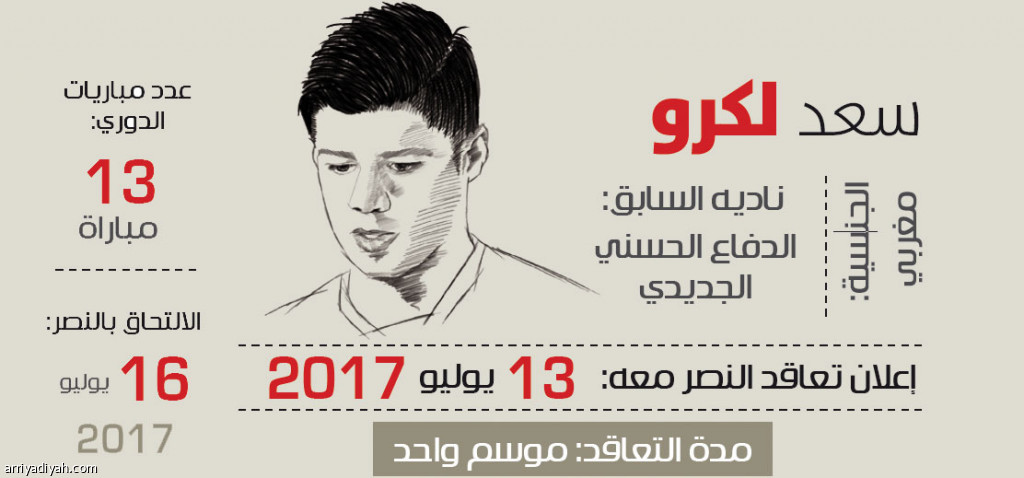 وكان وكيل أعمال لكرو قد وصل إلى الرياض لبحث مسألة حسم أمر موكله، إما بتأكيد بقائه أو الاستغناء عن خدماته، ليتسنى له النظر في العروض المقدمة له، أو العودة إلى الدفاع الحسيني الجديدي فريقه السابق.من جهة أخرى، جددت إدارة نادي النصر عقدي الدولي أحمد الفريدي لاعب الفريق لمدة موسمين، والبرازيلي برونو أوفيني لمدة عام، بعد أن تكفل بهما الأمير خالد بن فهد عضو شرف النادي.