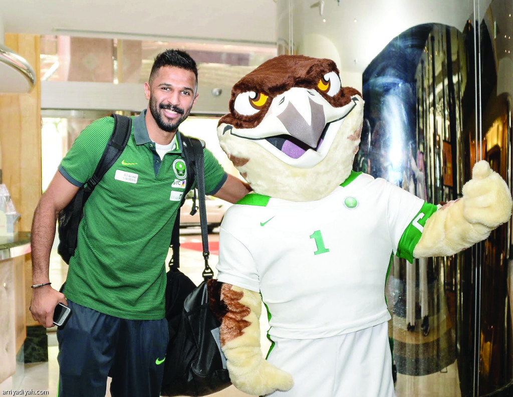 استقبلت تميمة المنتخب السعودي "الصقر" لاعبي المنتخب السعودي صباح أمس إذ وجدت منذ وقت مبكر ورافقت اللاعبين منذ وصولهم في مواقف السيارات وحتى صعودهم إلى الغرف. وتفاعل اللاعبون مع التميمة إذ قام بعضهم بالتصوير معها بجوالاتهم الخاصة، وداعب الحارس محمد العويس التميمة بعد أن لفتت انتباه بعض الجماهير وتجمعوا عليها للتصوير معها إذ قال العويس "هسترت فينا".