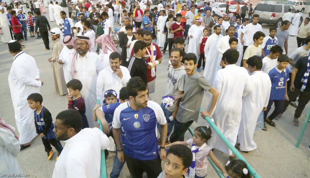 واللافت أن الغالبية العظمى من الجماهير الحاضرة ينتمون إلى الهلال على الرغم من أن المباراة تقام على ملعب القادسية، حيث اكتست تلك الساحات باللونين الأبيض والأزرق، وحرص أغلب الموجودين وخاصة الأطفال على ارتداء الشالات والأعلام الخاصة بنادي الهلال.