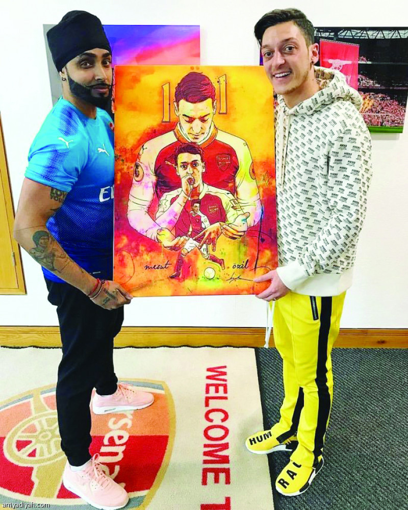 استقبل الألماني مسعود أوزيل لاعب فريق أرسنال الأول لكرة القدم أحد الرسامين ممن قام برسم لوحة ظهر فيها اللاعب الألماني بشعار فريقه أرسنال.