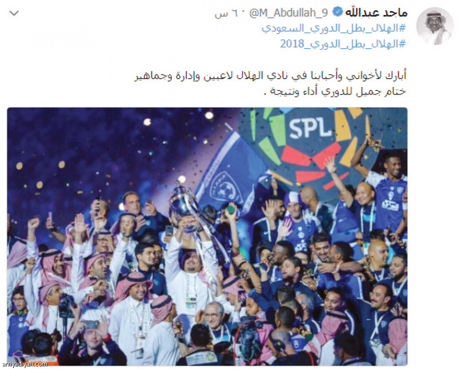 حصل حساب نادي الهلال في موقع التواصل الاجتماعي "تويتر" على 159.515 تفاعلاً على ثلاث وعشرين تغريدة احتفل فيها النادي بلقب الدوري السعودي للمحترفين بعد فوزه على الفتح بأربعة أهداف مقابل هدف واحد.