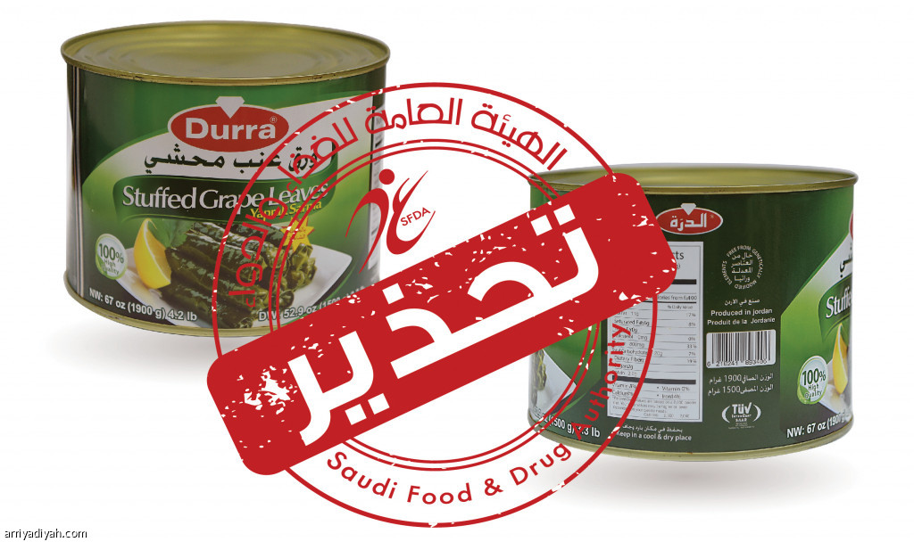 حذرت الهيئة العامة للغذاء والدواء المستهلكين من شراء أو استهلاك منتج ورق عنب محشي للعلامة التجارية “الدرة، Durra”، المنتج في الأردن الهاشمية؛ لاحتوائه على مبيد كاربندزيم “CARBENDAZIM” بنسبة تتجاوز الحدود القصوى المسموح بها من بقايا المبيدات في المواصفات المعتمدة.