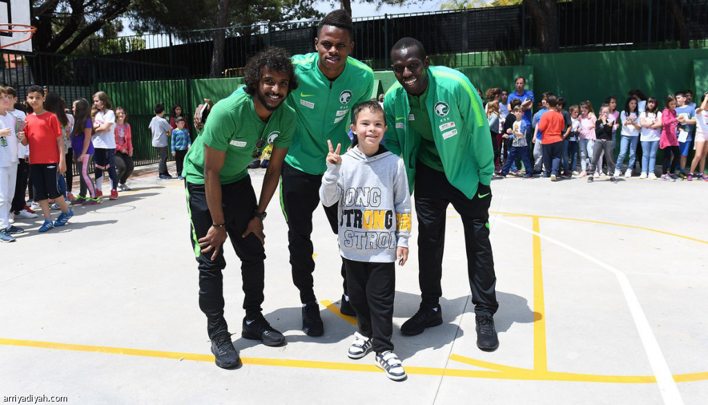 شارك لاعبون من المنتخب السعودي الأول لكرة القدم أمس، طلاب مدرسة خوان رامون خميمينز في مدينة ماربيا، الأنشطة اللاصفية، التي تم من خلالها التعريف بالسعودية، بطريقة شيقة من قبل الكادر التعليمي.