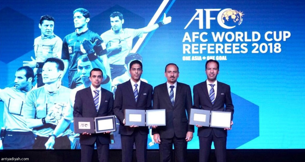 كرم الاتحاد الآسيوي لكرة القدم اليوم، الطاقم السعودي المشارك في إدارة مباريات نهائيات كأس العالم 2018 في روسيا، بقيادة الدولي فهد المرداسي والحكمين المساعدين عبدالله الشلوي ومحمد العبكري، بحضور المحاضر علي الطريفي.