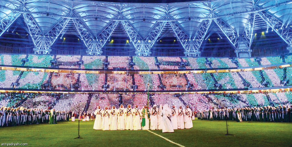 كما أدِّيت العرضة السعودية، بعدها اختتم الاحتفال بالألعاب النارية، التي غطت سماء ملعب “الجوهرة”. من جهة أخرى، استغرق تصميم عروض الاحتفال الأسطوري، أمس، نحو أسبوعين قبل تقديمه في ملعب مدينة الملك عبد الله الرياضية. وصُمِّمت العروض باحترافية عالية من قِبل شركة Comeanddo المتخصِّصة في تنفيذ الفعاليات.