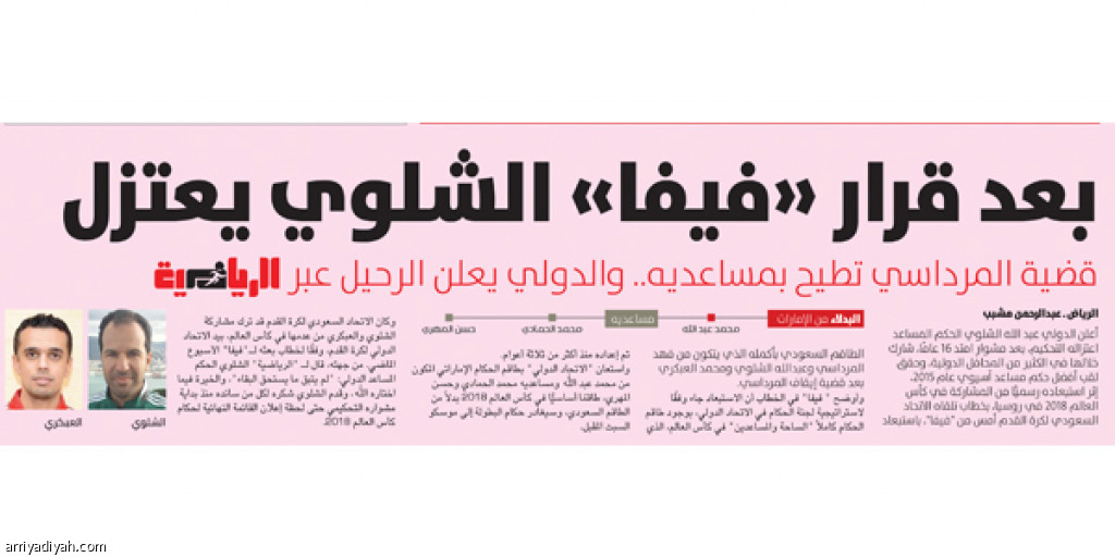وأكد "فيفا" إبلاغه الاتحادين السعودي والآسيوي بالقرار. ولفت إلى استدعائه الإماراتي حسن المهري والياباني هيروشي ياماوتشي، الحكمين المساعدين، لينضما إلى الطاقمين اللذين يقودهما الإماراتي محمد عبدالله والياباني ريوجي ساتو، فيما لن يتم استدعاء بديل المرداسي بعد إبعاده.