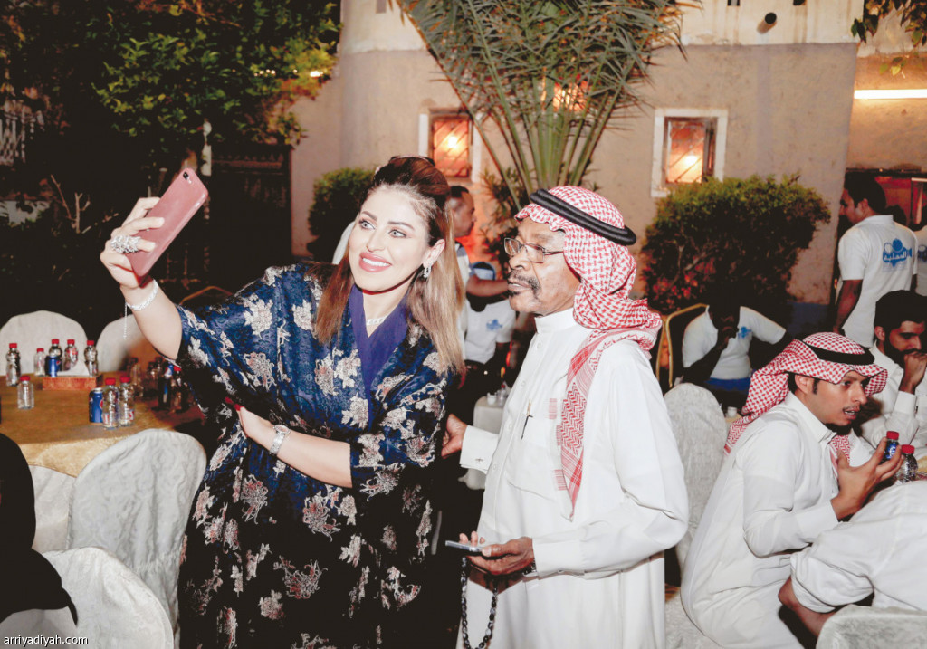 صورة التقطت لدالين عبدالإله خبيرة التجميل والخدع السينمائية تأخذ سيلفي مع علي إبراهيم الممثل خلال مائدة السحور التي جمعت طاقم مسلسل “بدون فلتر” في منزل عبدالله السدحان في حي البديعة تصوير: بشير صالح
