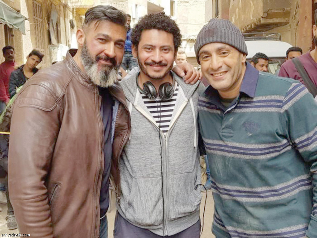 صورة التقطت للمخرج محمد سلامة يتوسط أحمد السقا وياسر جلال في كواليس التصوير(أرشيفية)