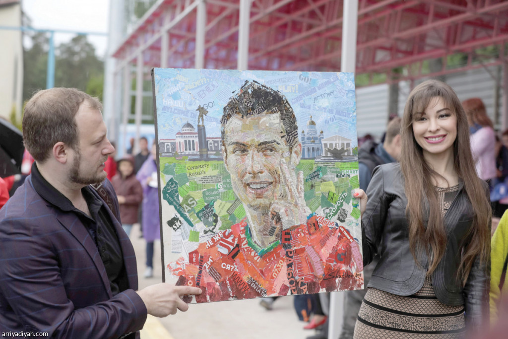صورة التقطت في ضواحي العاصمة الروسية موسكو لأحد عشاق رونالدو يعرض صورة له ويعتزم إهداءها له خلال زيارته لمعسكر البرتغال في كراتوفو (الأوروبية)