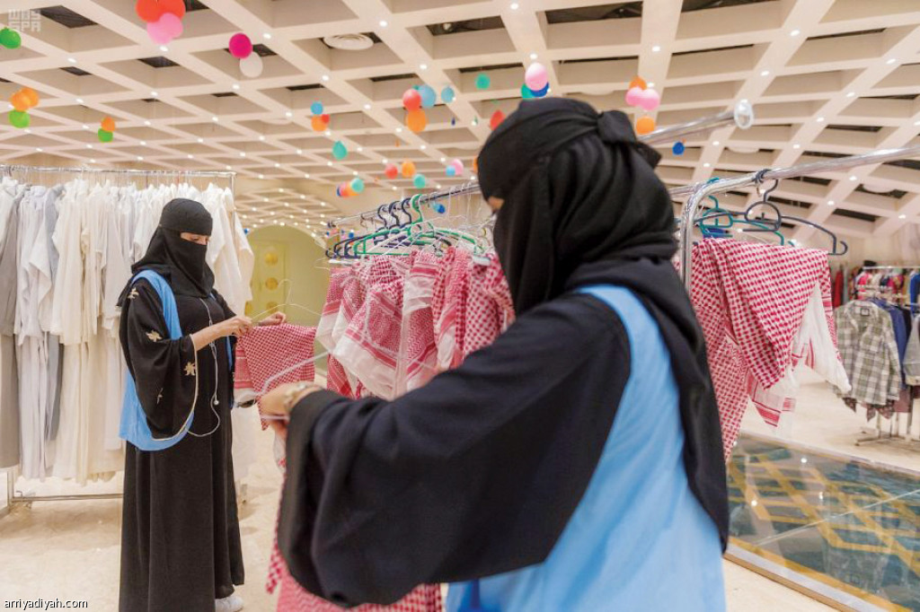 صورة التقطت أمس لمتطوعتان تجهزان كسوة العيد (واس)