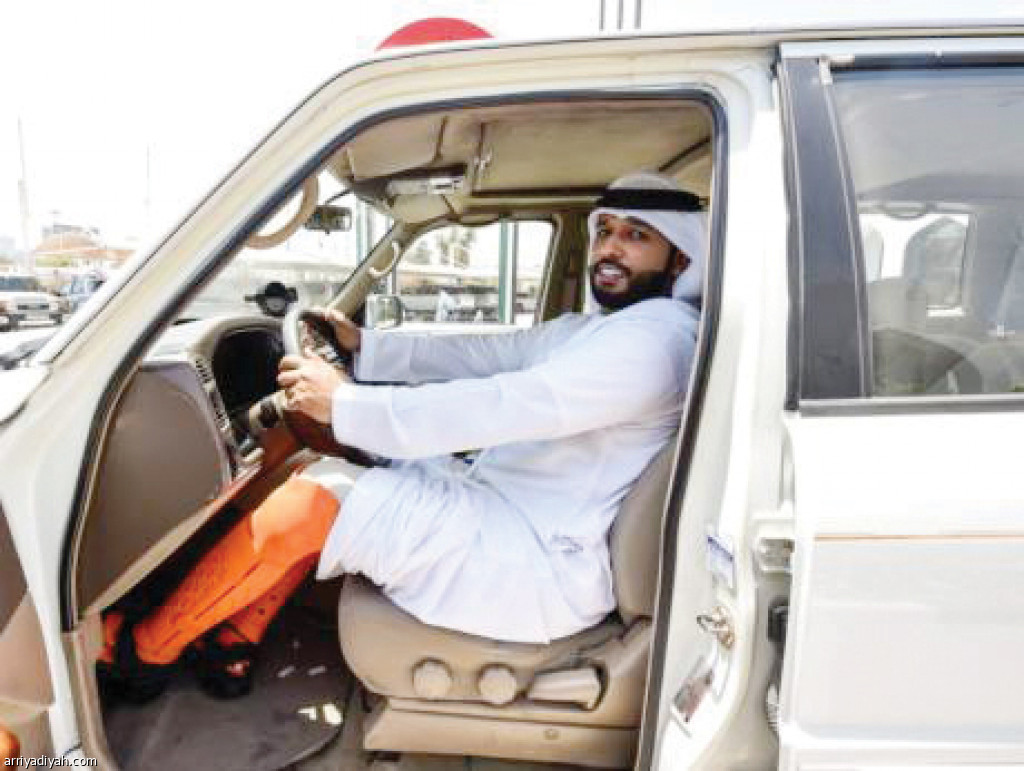 صورة التقطت للشاب الإماراتي داخل سيارته بعد تركيب ساقيه الجديدتين (جولف نيوز)