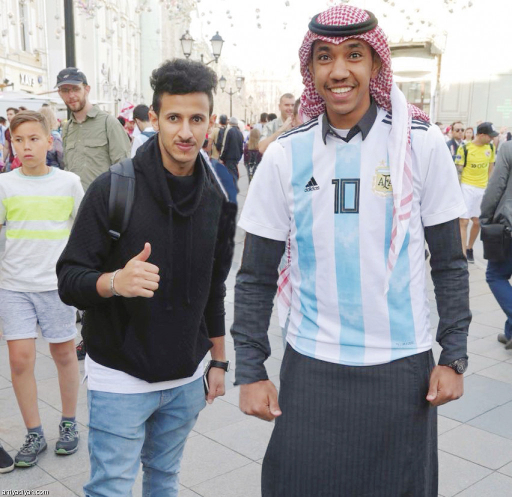 وتابع: "بعض من يشاهدني يستغرب من ارتدائي الشماغ وقميص الأرجنتين، فعلت ذلك لأنني سعودي وأعتز بالزي السعودي، أما قميص الأرجنتين فارتديته بسبب الأسطورة ميسي".