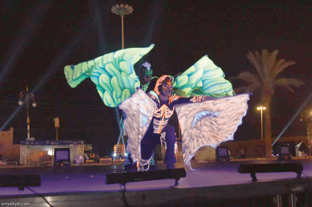 وقدمت فرقة "الإيلومينيت" عروضًا للضوء تفاعل معها الحضور خاصة الأطفال، إضافة إلى العرضة السعودية والسامري، تخللتها لوحة كتب من خلالها الحضور رسائل لجنودنا المرابطين على الحد الجنوبي حملت عنوان "يستاهلون جنودنا".