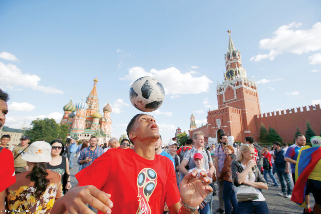 صورة التقطت أمس لمشجع روسي يستعرض مهاراته الكروية في أحد ميادين إيكاترينبرج الروسية عشية المباراة التي ستجمع اليوم فرنسا وبيرو ضمن المجموعة الثالثة في كأس العالم (الفرنسية)