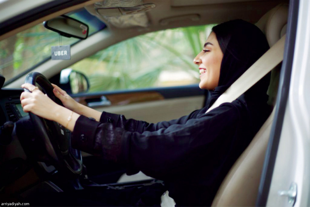 صورة التقطت لإحدى السيدات تقود سيارة "أوبر" (المركز الإعلامي ـ أوبر)