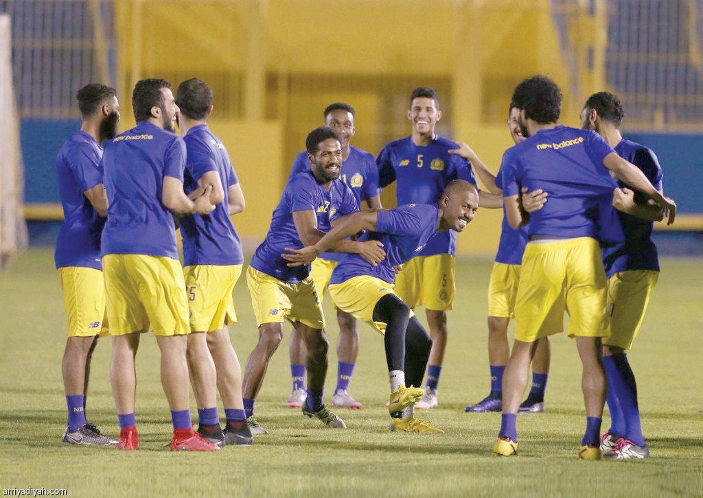 صورة التقطت أمس لعوض خميس يمازح إبراهيم غالب في الحصة التدريبية المسائية لفريق النصر الأول لكرة القدم.. وواصل الفريق التدريب على فترتين صباحية ومسائية بطلب من دانييل كارينيو المدرب الأوروجوياني.. واحتضنت صالة الحديد الفترة الصباحية (المركز الإعلامي ـ النصر)