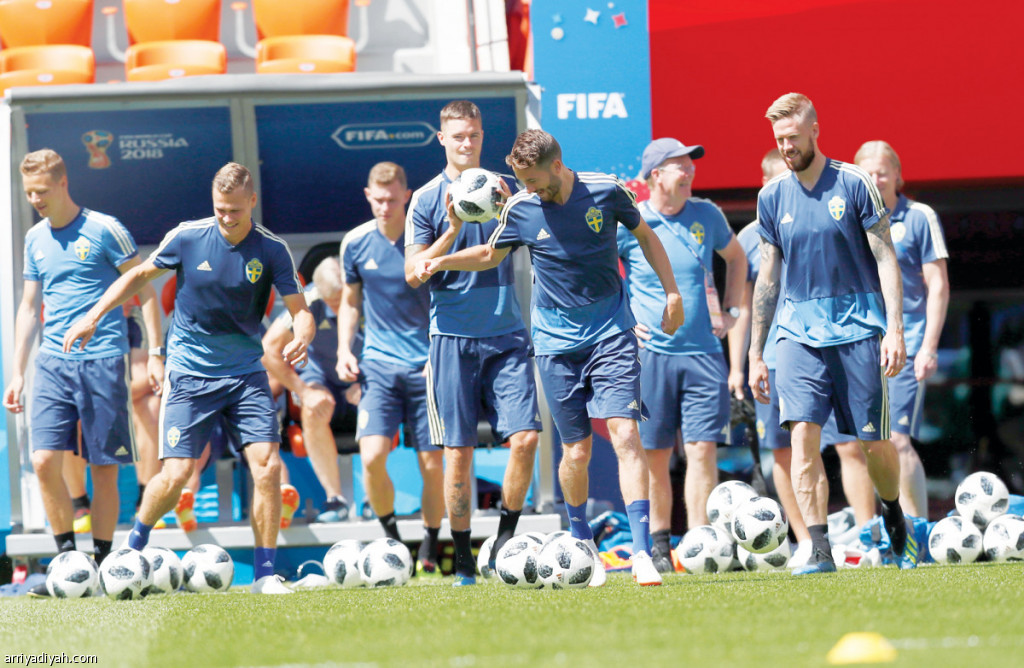 صورة التقطت للاعبي منتخب السويد يؤدون التدريبات على ملعب "إيكاترينبورج أرينا" استعدادًا للمكسيك (الأوروبية)