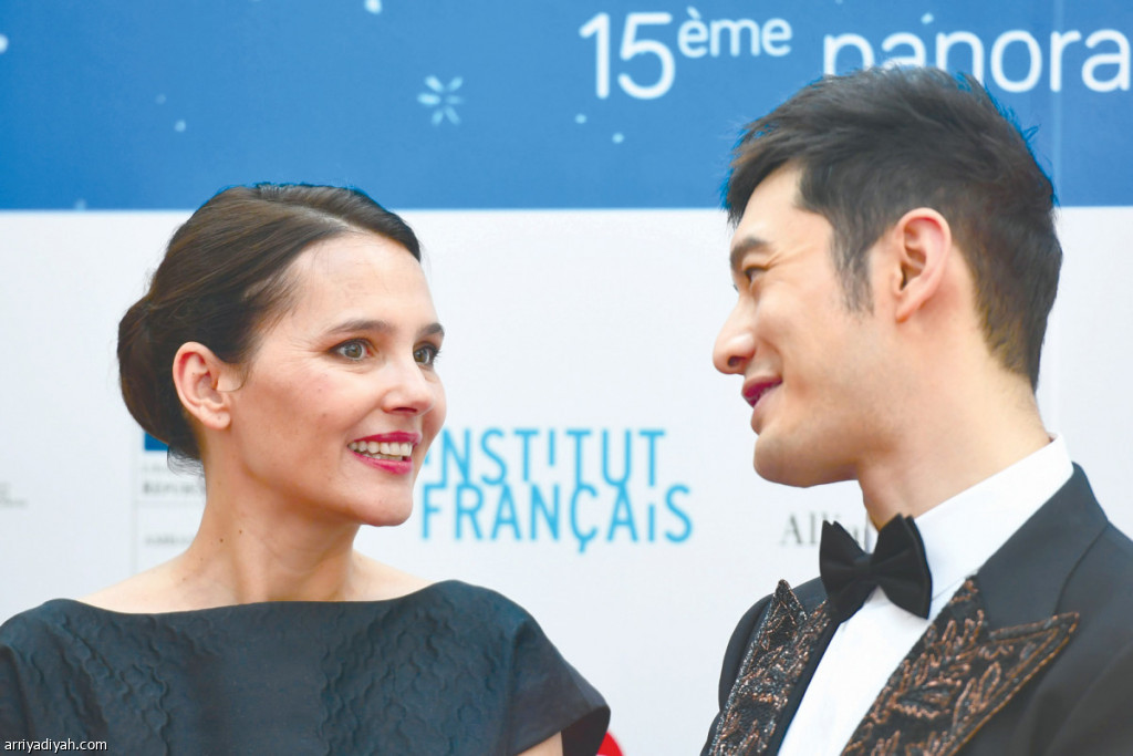 صورة التقطت أمس لفرجينيا ليدوين الممثلة الفرنسية وهانج أكساومينج الممثل الصيني خلال مؤتمر صحفي بمناسبة افتتاح مهرجان الفيلم الفرنسي في بكين (الفرنسية)