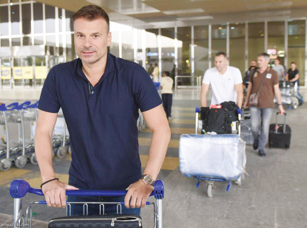 صورة التقطت أمس للصربي ألكسندر ستانوجيفيتش مدرب القادسية الجديد لدى وصوله مع طاقمه المساعد إلى الدمام (المركز الإعلامي ـ القادسية)