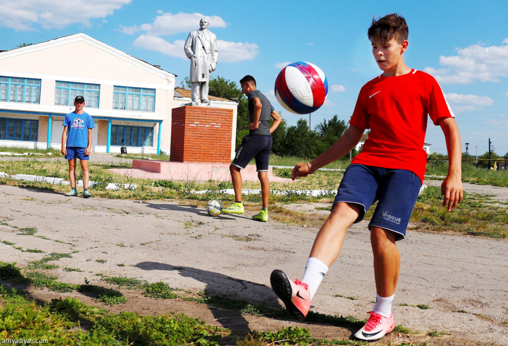 صورة التقطت أمس لأطفال روس قرويين يمارسون كرة القدم في إحدى القرى التابعة لريف العاصمة موسكو ويحلمون بتمثيل منتخب بلادهم في المستقبل (رويترز)