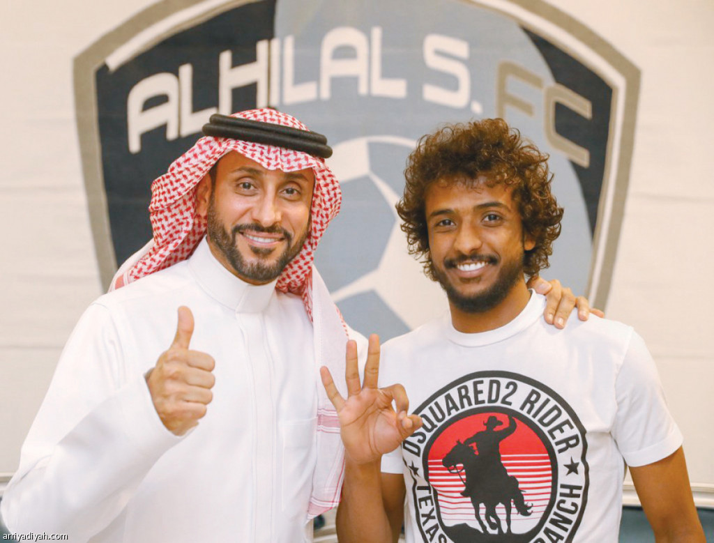 صورة التقطت أمس للشهراني والجابر بعد التوقيع (المركز الإعلامي ـ الهلال)