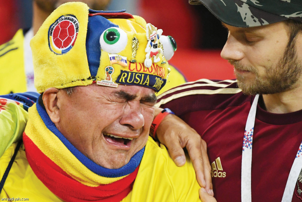صوره التقطت أمس للحسرة التي ظهرت على جماهير منتخب كولولمبيا في مدرجات ملعب أتكريت أرينا في موسكو العاصمة الروسية بعد نهاية المواجهة التي جمعت منتخب بلادهم بإنجلترا وتأهل في نهايتها الإنجليز إلى دور الثمانية عقب الانتصار بركلات الترجيح 5-4 (الفرنسية)