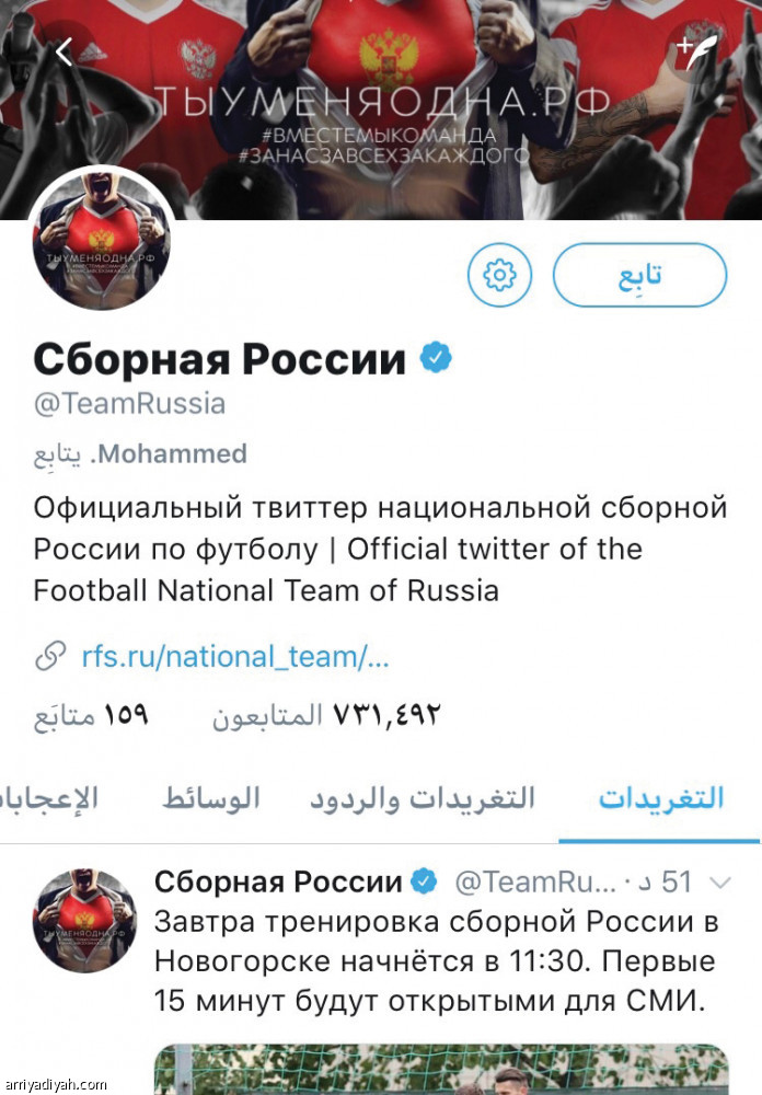 فيما جاء حساب منتخب إنجلترا ثالثًا بـ 600 إعجاب، و96 عدد الريتويت، و17 تعليقًا، وجاء حساب البلد المستضيف للبطولة روسيا في المركز الرابع بـ 500 إعجاب، و94 عدد الريتويت، و15 تعليقًا.