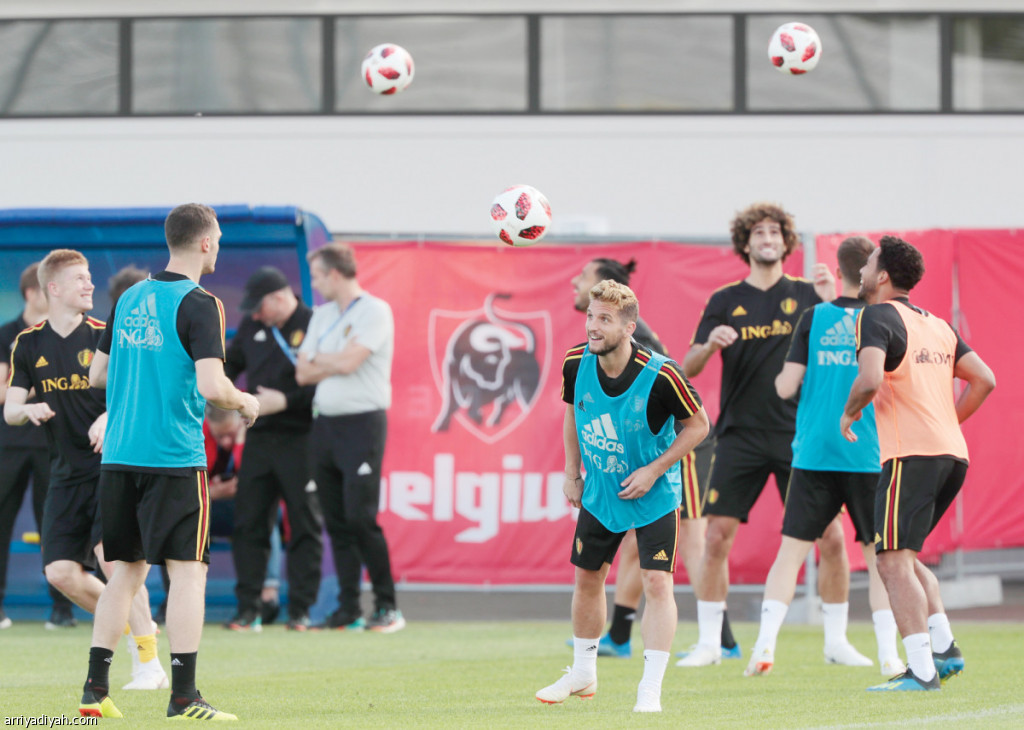 غاب إدين هازارد، روميلو لوكاكو، أكسل فيتسل، فينسنت كومباني، وتوما مونييه لاعبو المنتخب البلجيكي أمس الأحد عن ربع الساعة الأولى من الحصة التدريبية الجماعية للمنتخب البلجيكي لكرة القدم المفتوحة أمام وسائل الإعلام، وذلك قبل مواجهة فرنسا في ربع نهائي مونديال روسيا في كرة القدم.