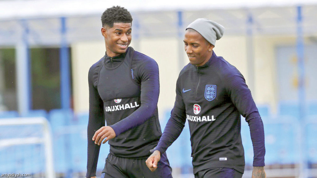 صورة التقطت أمس للثنائي يانج وراشفورد في تدريبات المنتخب الإنجليزي (المركز الإعلامي ـ اتحاد القدم الإنجليزي)