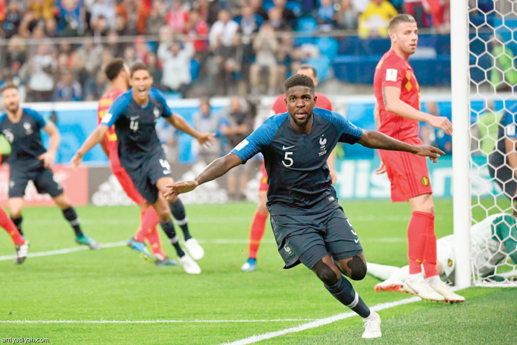 صور التقطت أمس لأومتيتي محتفلاً بهدف التأهل في شباك بلجيكا (الفرنسية)