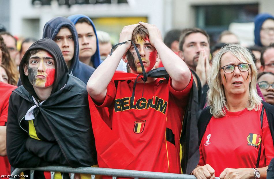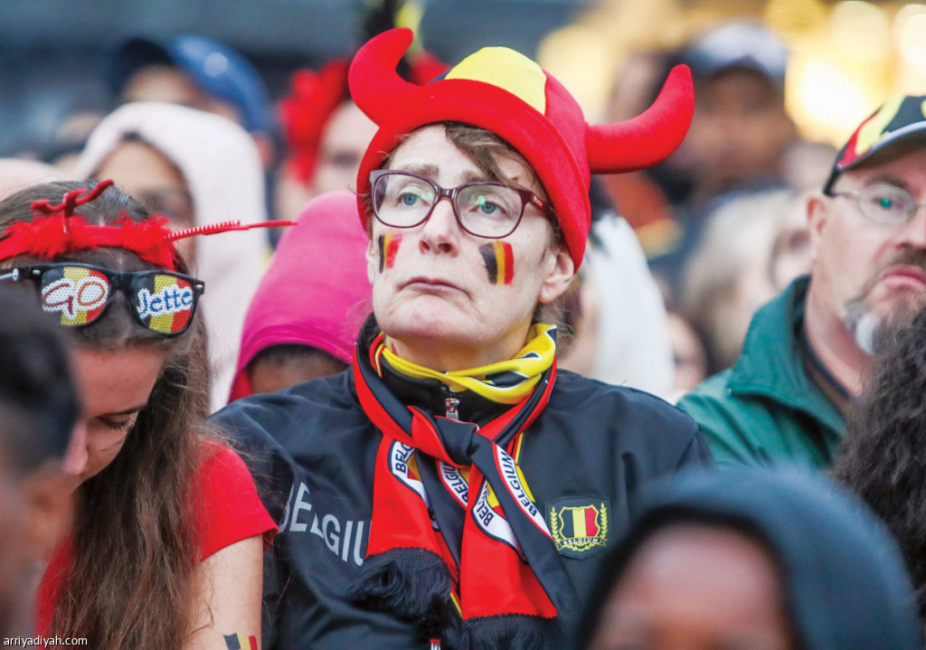صور التقطت أمس لمشجعين بلجيك خلال متابعتهم أحداث مباراة المنتخبين في نصف نهائي كأس العالم في روسيا والتي انتهت لصالح فرنسا بهدف نظيف (الأوروبية)