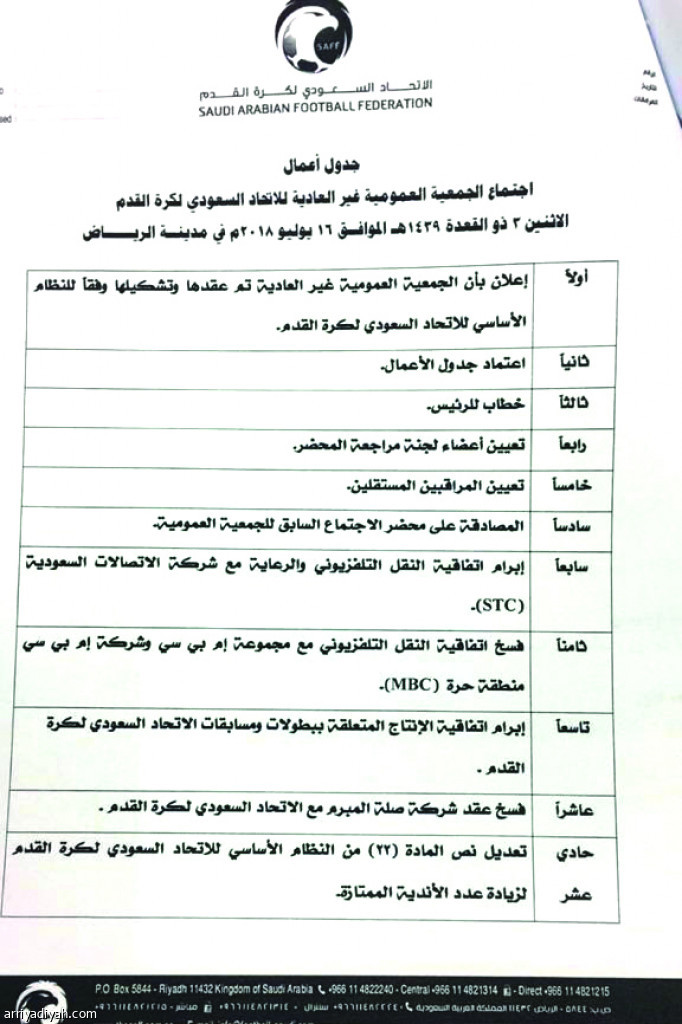وكانت أمانة الاتحاد السعودي لكرة القدم خاطبت أعضاء الجمعية العمومية للاتحاد، وأشعرتهم بموعد ومكان الاجتماع، وجدول أعماله.