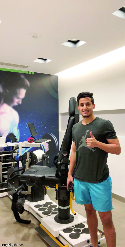صورة التقطت أمس لعبد الكريم القحطاني يؤدي تمارين في إطار برنامج تأهيلي (المركز الإعلامي ـ عيادة فيزيوتريو)