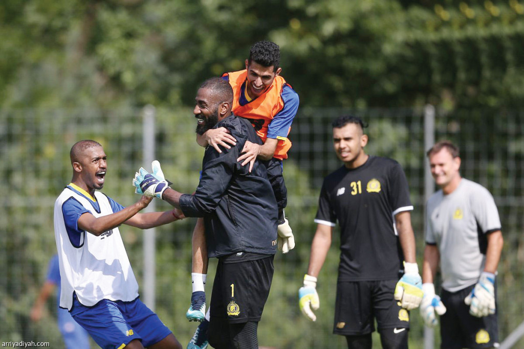 صورة التقطت أمس من تدريبات النصر للثلاثي وليد عبد الله وإبراهيم غالب وسلطان الغنام (المركز الإعلامي ـ النصر)