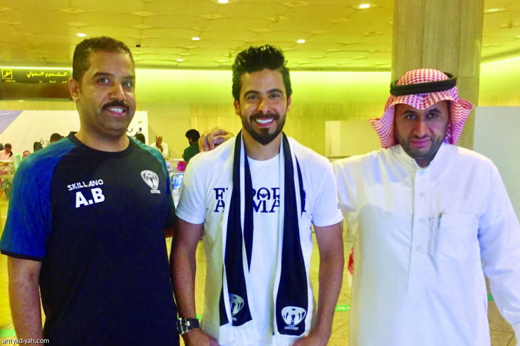 صورة التقطت أمس لنور في المطار متوسطًا البخيت والعديل (المركز الإعلامي ـ هجر)