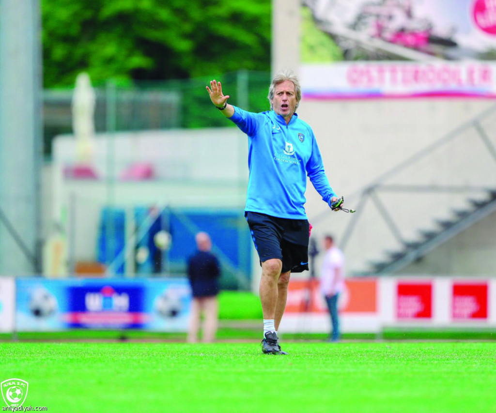 صورة التقطت أمس للبرتغالي خيسوس مدرب فريق الهلال الأول لكرة القدم يوجه لاعبيه خلال التدريب الصباحي في معسكر النمسا (المركز الإعلامي ـ الهلال)