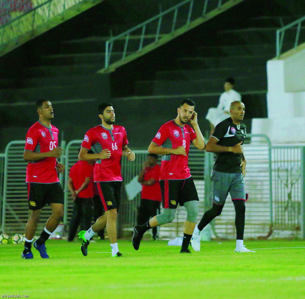 صورة التقطت لدوخة وبلقروي وعطوة خلال تدريبات فريق الرائد (المركز الإعلامي ـ الرائد)